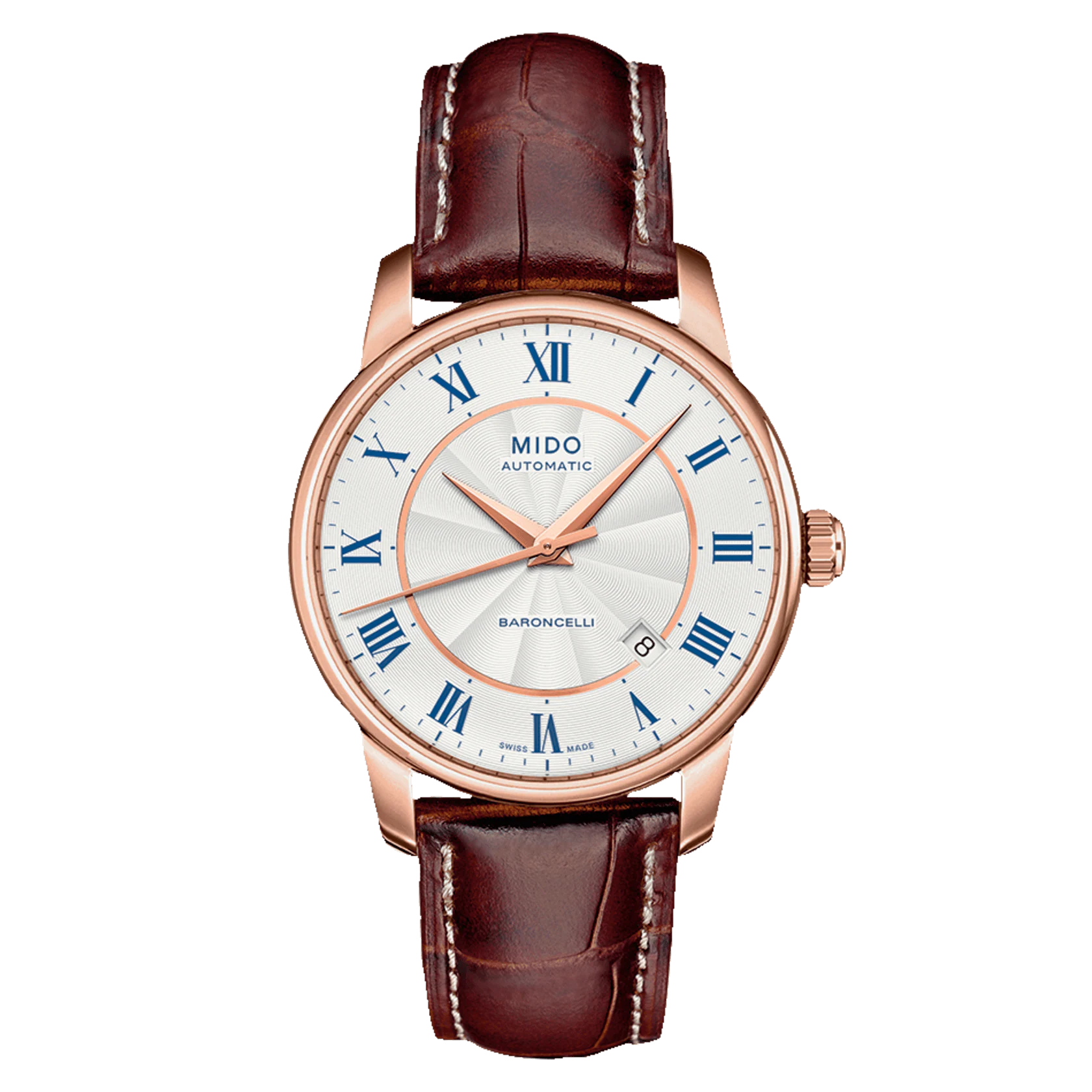 The Baroncelli Tradition Swiss watch honours Mido's watchmaking heritage in its most timeless form. The harmonious lines and subtles curves bestow both a rare sense of elegance and tradition on this classical collection. Fitted with latest-generation technology, the automatic movement can be admired through the transparent case back.