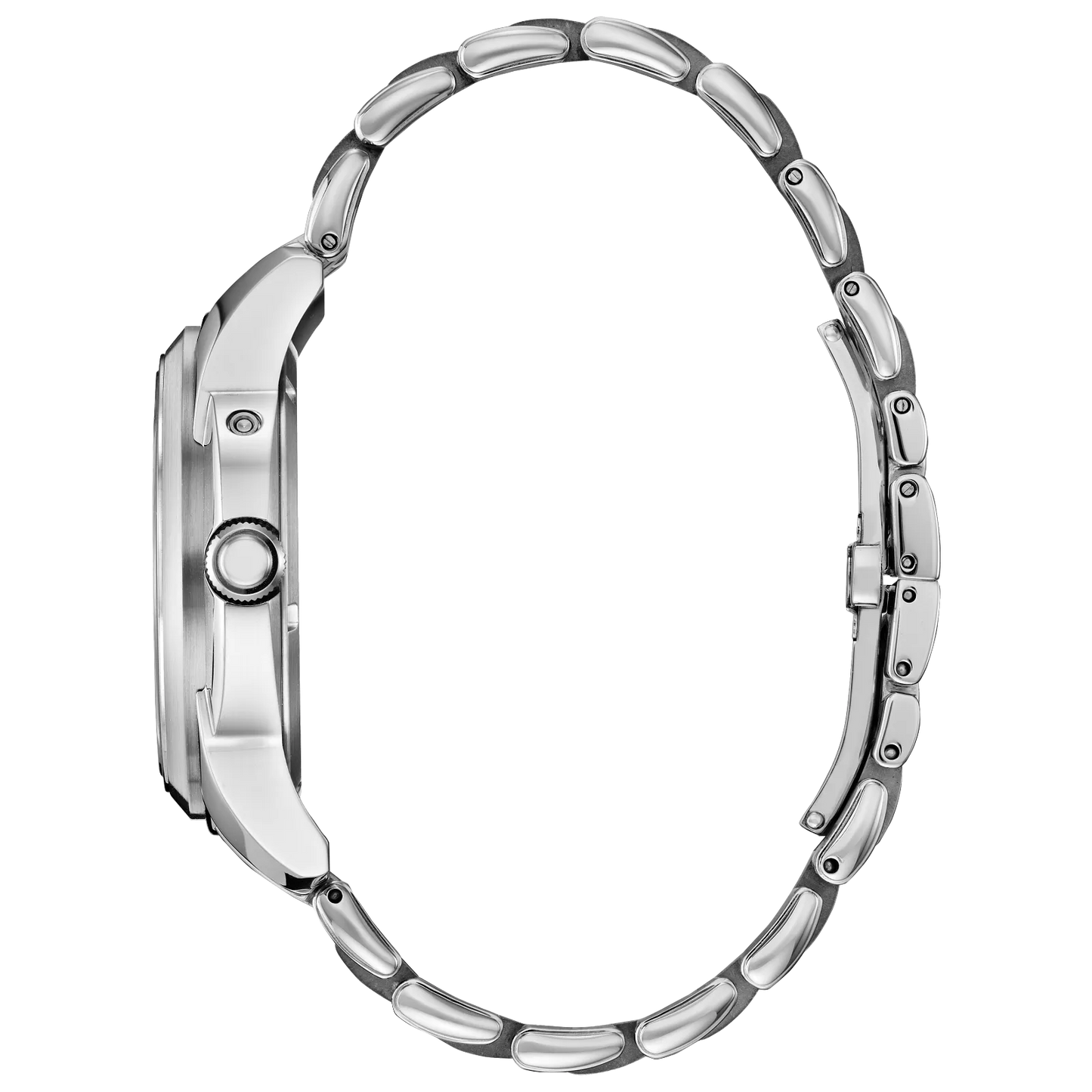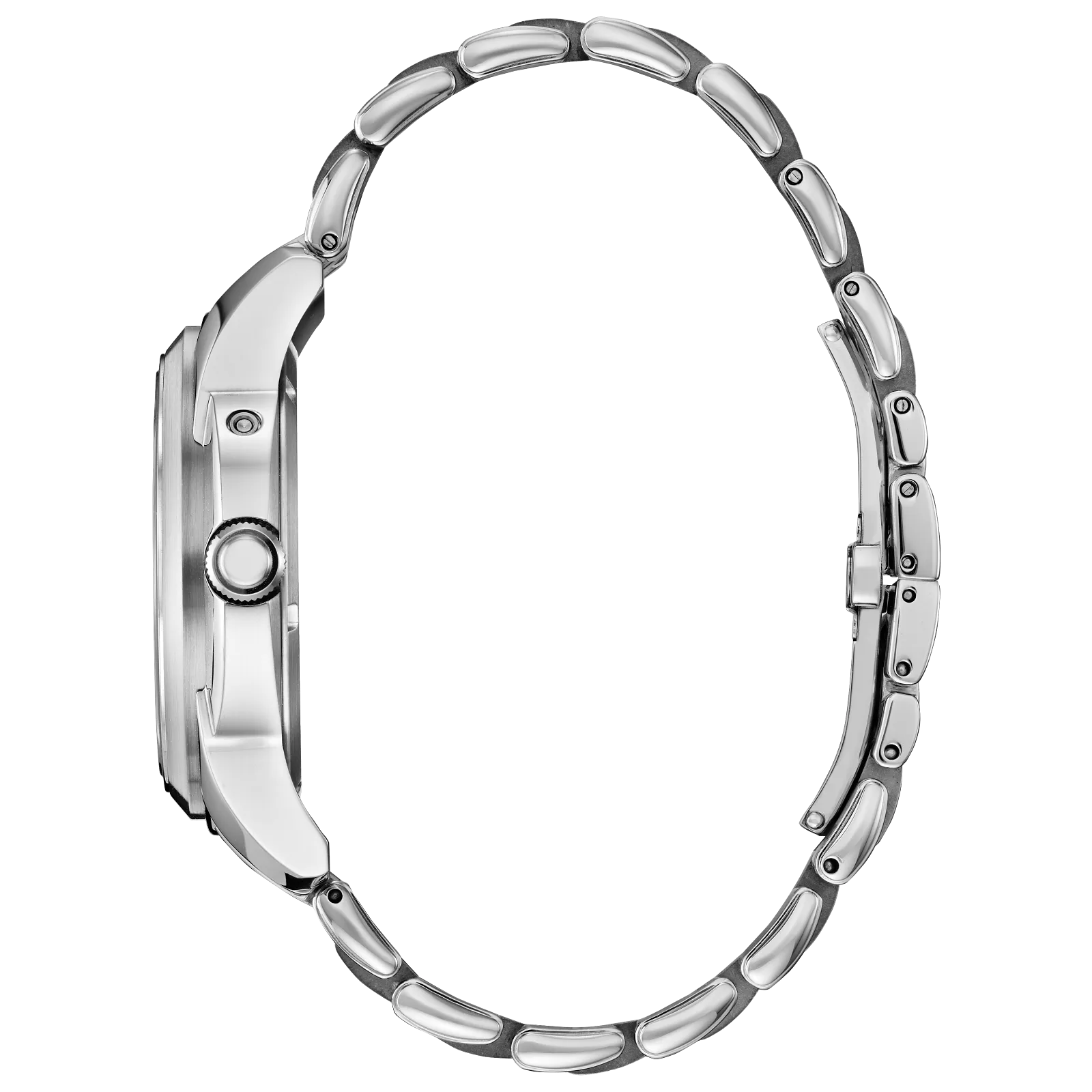 Bring sophistication to your day with the new Calendrier from Citizen. Avant-garde in style, the future-focused timepiece wears 41.8mm on the wrist in silver-tone stainless steel. A recessed crown and five-link stainless steel bracelet add to its distinction.