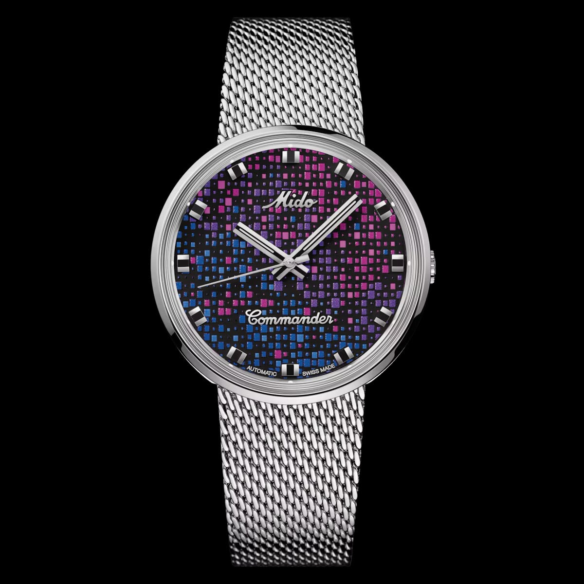 The Commander 1959 Swiss watch has been produced without interruption since that year. The integrated bracelet and the vintage MIDO logo are typical of this iconic model as well as the monocoque case housing an automatic movement.