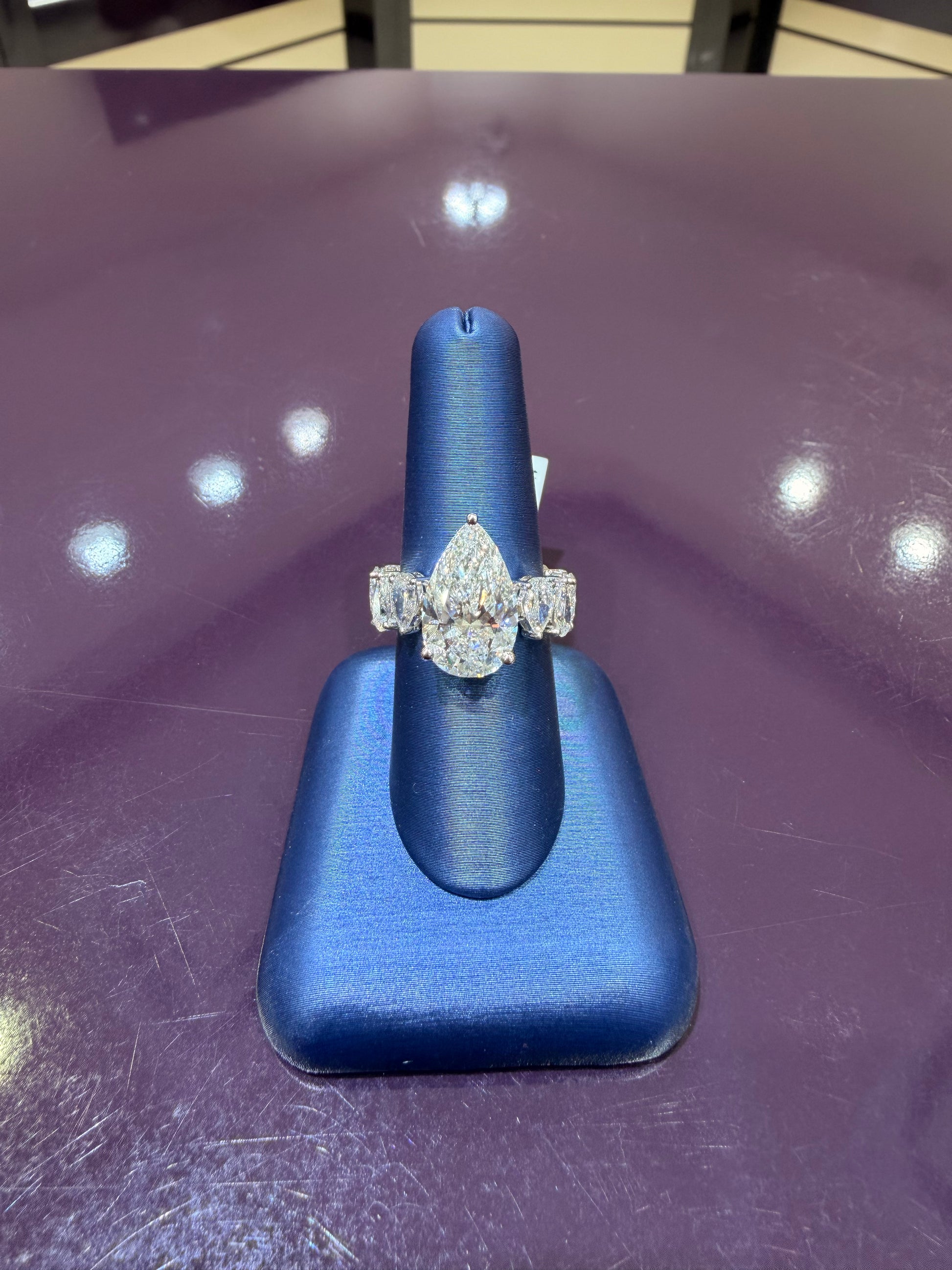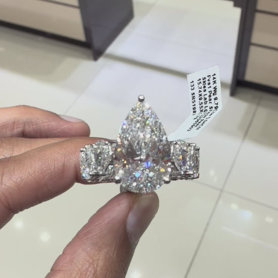 Custom Pear Shape lab engagement ring in 14K white gold 9.79ctw