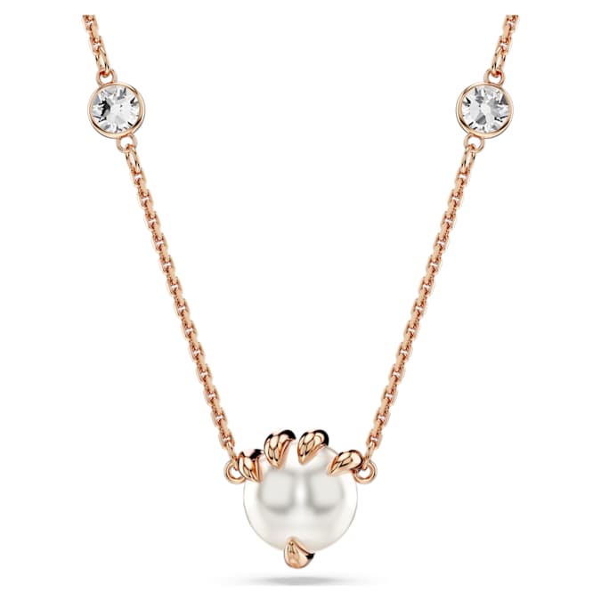 Celebrate the Year of the Dragon in style with this unique Swarovski pendant. The rose gold-tone plated design is worn on a chain featuring an array of Crystal Pearl embellishments. At the center is a powerful dragon’s claw, which holds on tightly to a single white Crystal Pearl. Wear this striking piece yourself or present it as an auspicious gift.