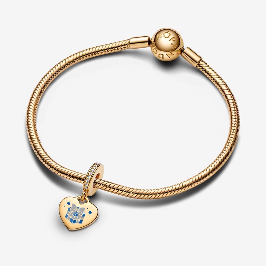 Crafted with love in 14k gold plating, a beautiful blue Hanukkah gift box sits at the center of this heart-shaped pendant set with a row of pavé along the bail, adding an extra touch of sparkle to the season of love and light. Believe in the magic, the power, the feeling of love. Wear your holiday joy. Be love.