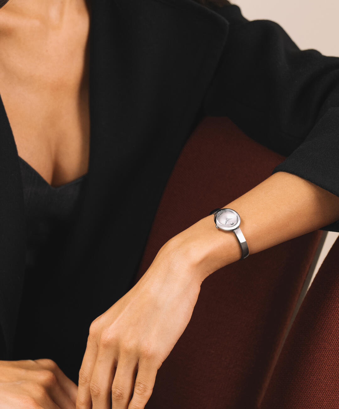 Modern, minimal, and made to stack. The Jewelry-Inspired Movado Museum Bangle.