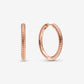 Create an instantly iconic look with the Pandora Moments Charm Hoop Earrings. Hand-finished in 14k rose gold-plated metal, these earrings feature Pandora's famous snake chain pattern. Each hoop can hold up to three charms, dangles or pendants (just be careful not to overload them, so they don't weigh down your ears). Sleek on their own or personalized when paired with your favorite charms, these hoops are a style win.