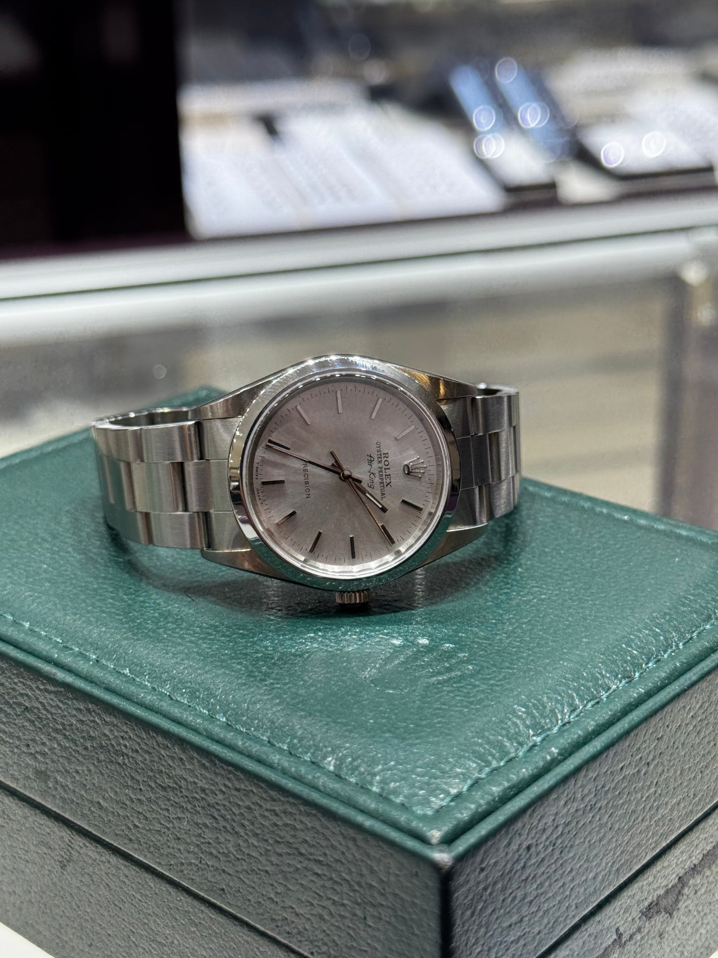 | Model Name: | Rolex Air King 34mm Silver Dial Smooth Bezel Steel Mens Watch 14000 + 1 extra link |