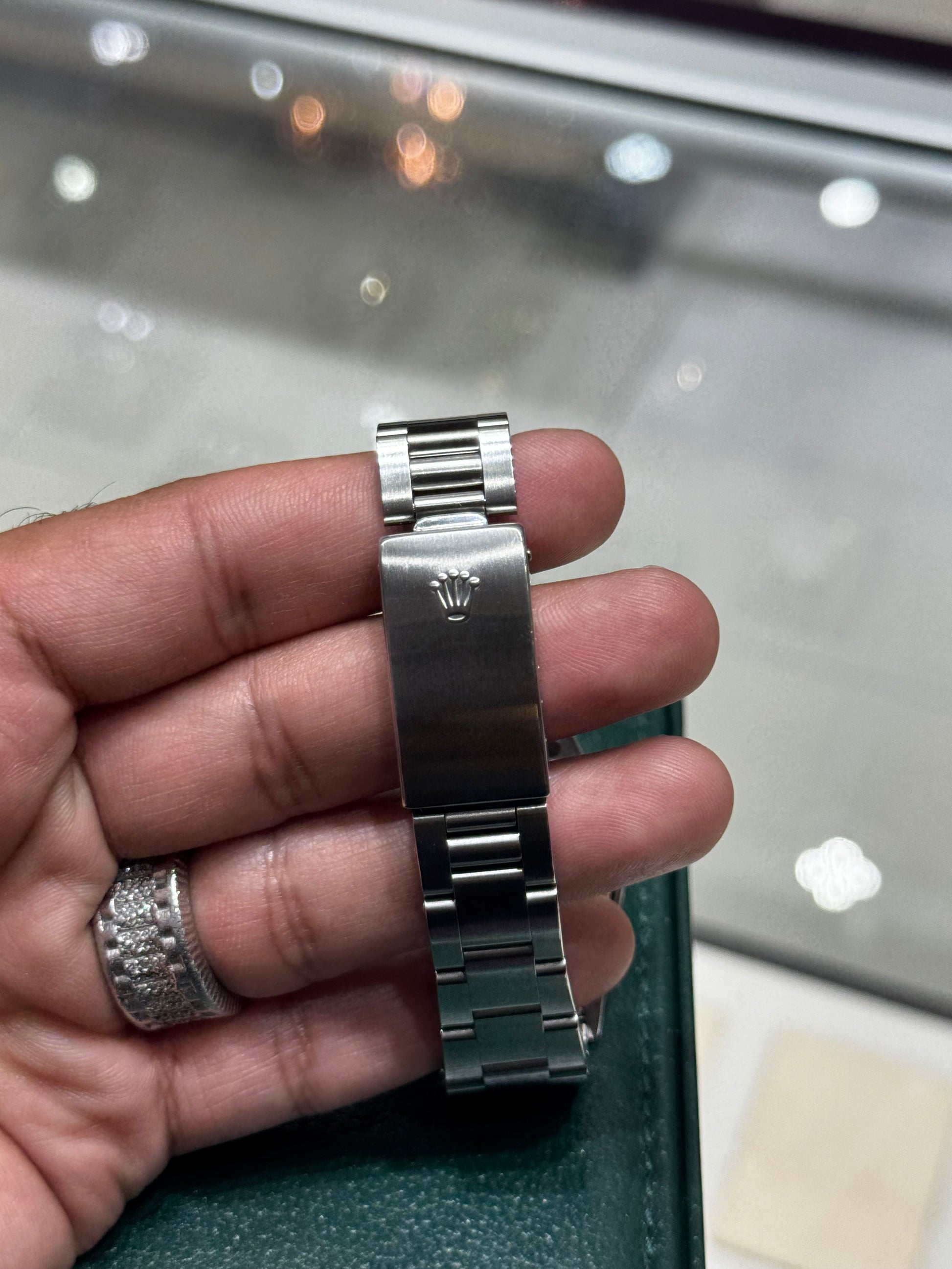 | Case: | Stainless steel case 34 mm in diameter. Rolex logo on the crown. |