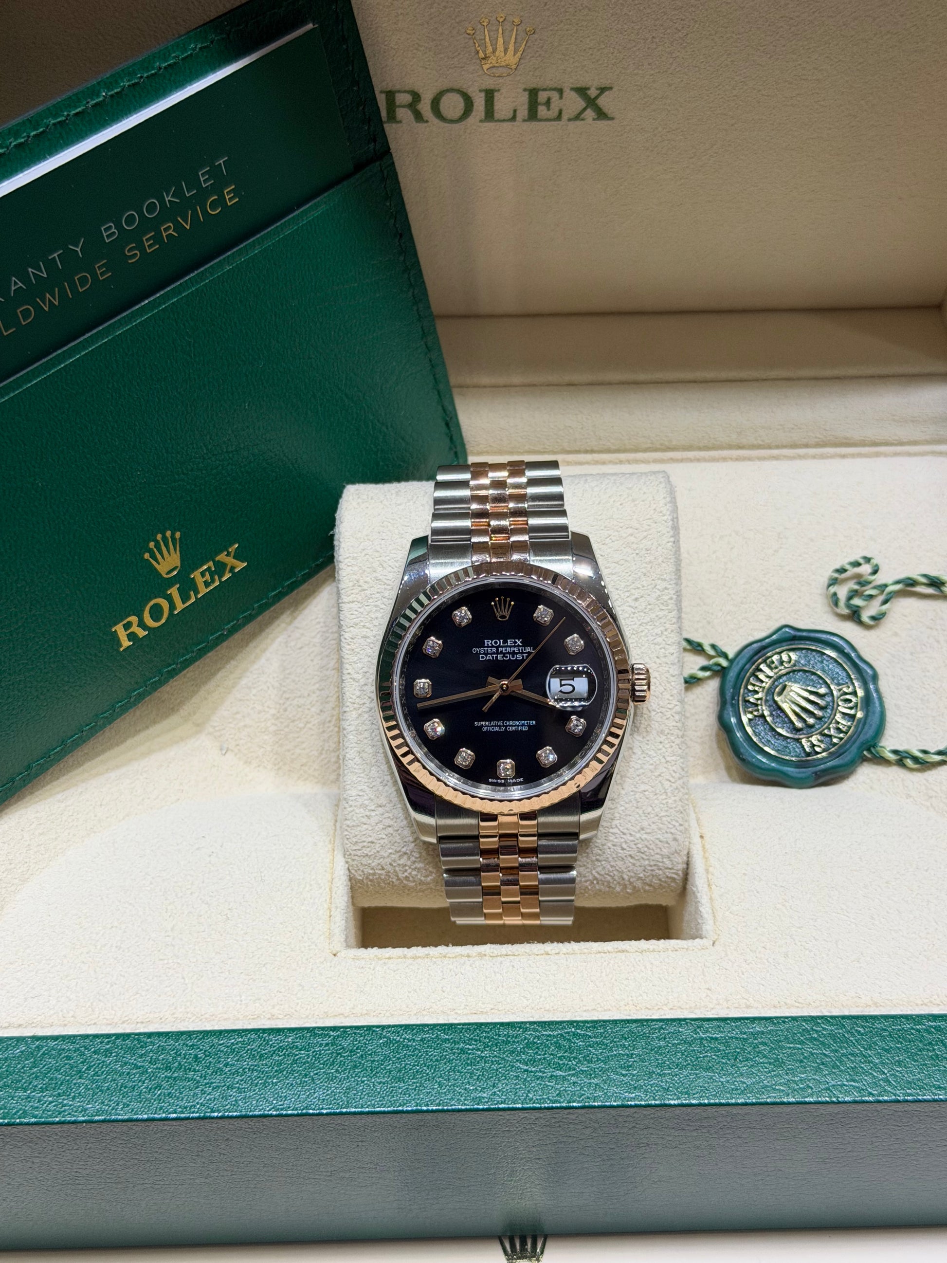 Rolex Datejust 36mm Stainless Steel Black Diamond Dial – 116231 Luxury Timepiece