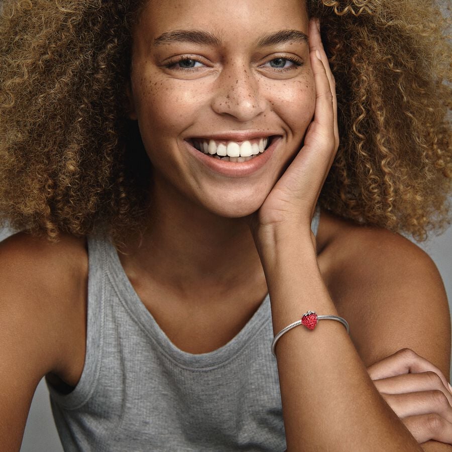 Add the lush flavor of fruit to your look with this sterling silver strawberry charm, hand-finished with transparent red enamel and lifelike seed details created by grooved indents under the enamel. Style it on your favorite Pandora Moments bracelets and charm holders and surround yourself with the feeling of a lazy picnic in the sun.