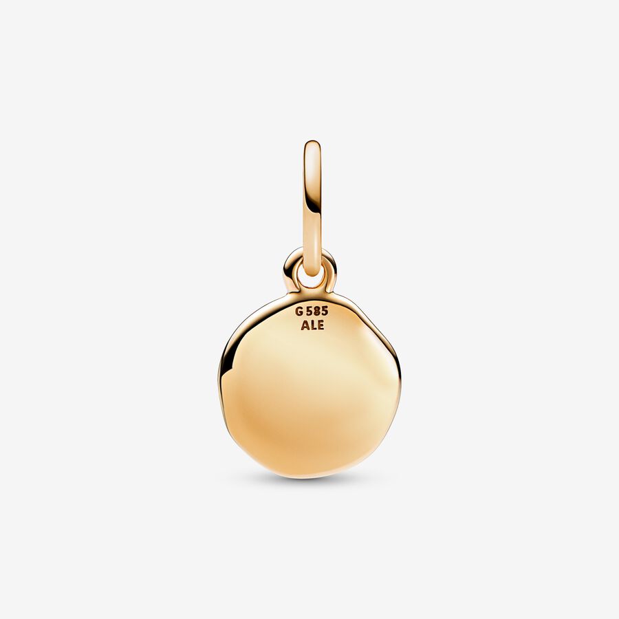 A golden gift for the one who's left their stamp on your heart. The Sparkling Love Stamp Dangle Charm is crafted in 14k solid gold and features an organically shaped round disc with slightly raised edges, resembling an old-fashioned wax seal on a letter. At the center are raised letters spelling "L♥VE", with three stones set into a heart shape in place of the "O". Carry a message of love wherever you go when you wear it on your favorite Pandora jewelry or charm holder.