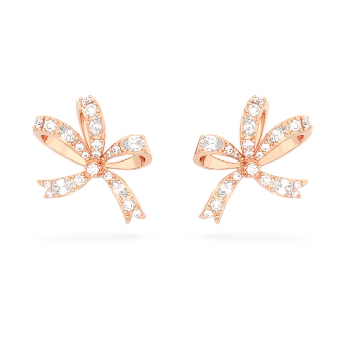 These glowing bow-inspired studs are an ideal way to bring more elegance to your look. Each rose gold-tone plated piece is tied up in a ribbon design with an array of bright clear crystals set in place using the chattonage technique. A clear central stone provides the finishing touch. A wonderful romantic gift idea, these can be matched with a necklace from the Hyperbola collection to harmonize your style.